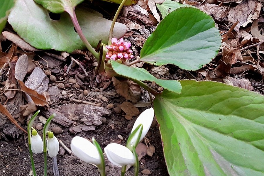 A medvetalp, leánykori nevén vaskoslevelű bőrlevél ugyanakkor virágzani kezdett és igen jól megfér a hóvirágokkal. Van hely a Nap alatt. A szintén meleg télelő miatt másodvirágzásba fordult medvetalp másfél éve 2019 novemberében viszont elfagyott az akkori szélsőséges időjárás következtében.